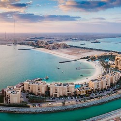 Located a mere 45 minutes from Dubai International Airport, this charming beachfront resort is surrounded by deserts, mountains and sea, making it a landmark destination for travelers. Located adjacent to the 18-hole championship Al Hamra Golf Club and with an award-winning spa, Waldorf Astoria Ras Al Khaimah promises a relaxing getaway and unforgettable experiences.